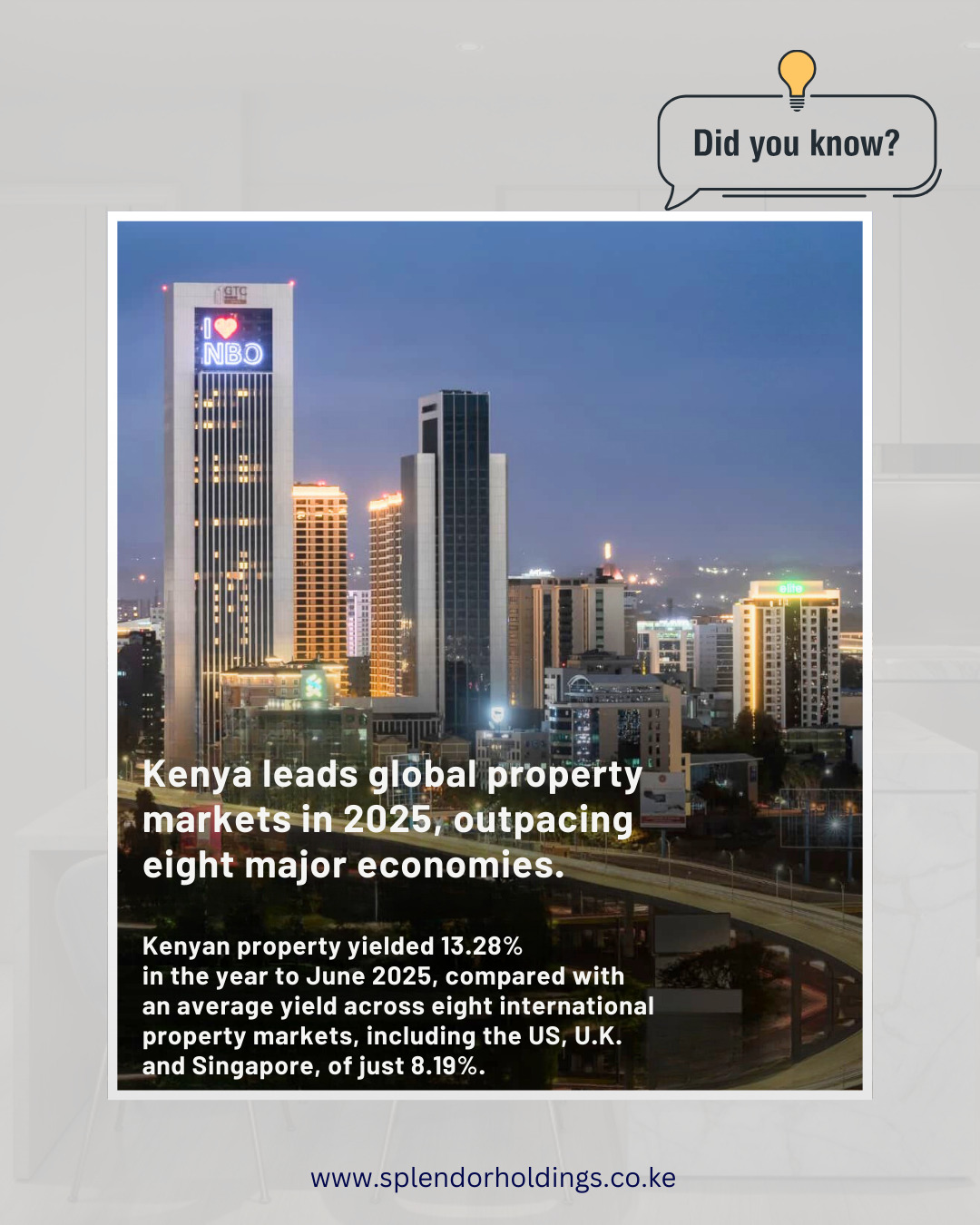 Kenya’s property sector is no longer an emerging story; it’s a global leader. With 425% growth since 2000 and market-leading yields of 13.28% in 2025, the country has proven its resilience and potential. Investors who move now could benefit from both capital appreciation and exceptional income returns.